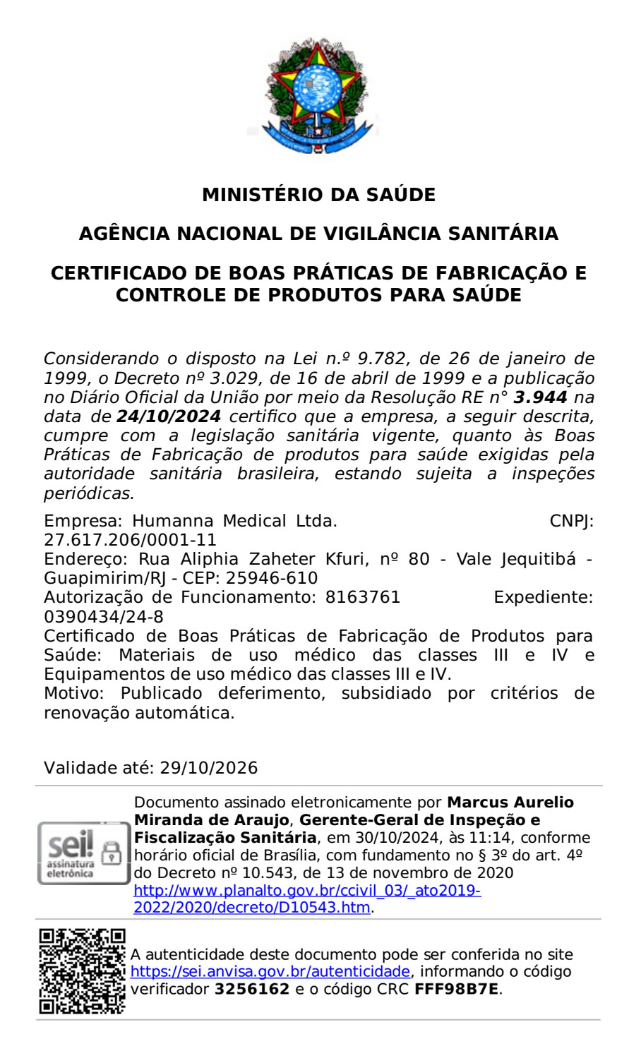 A HUMANNA MEDICAL compromete-se a garantir a qualidade, a segurança e a eficácia de seus produtos e processos, assegurando a confiança de seus clientes e a conformidade com a legislação aplicável.